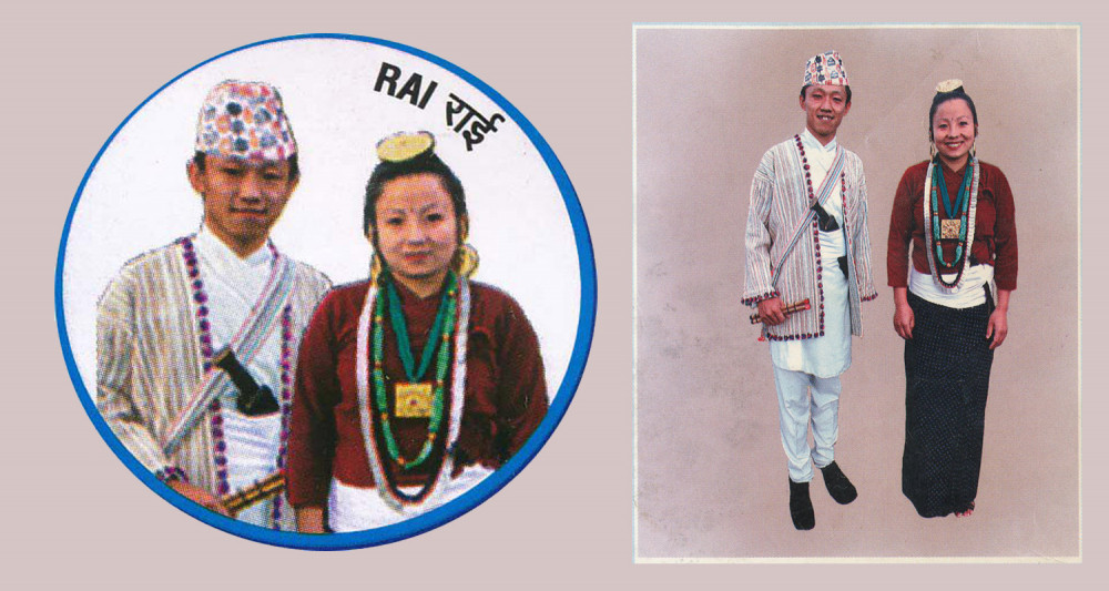 किरात राई जातिको प्रतिनिधि पात्र दम्पती दशरथ राई र तारादेवी राई । तस्बिर तथा रेखाचित्र स्रोत : दशरथ राईको फेसबुक वाल, गुगल र इकान्तिपुर