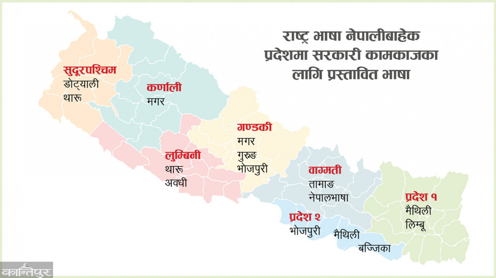 राष्ट्र भाषा नेपालीबाहेक प्रदेशमा सरकारी कामकाजका लागि प्रस्तावित भाषा