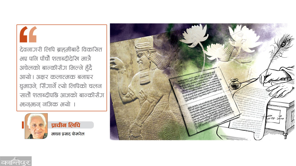 इरानीहरूका माटामा अलेक्जान्डर (इपू चौथो शताब्दी) को दिग्विजयपछि निकै समय ग्रिसेलीहरूको प्रभुत्व रह्यो (कुहुर्त, २००७ इ, ‘द पर्सियन एम्पायर’) । इरानी शासनमा आरामाइक लिपिकै प्रयोग हुन्थ्यो । पहिले त शासनको भाषा पनि आरामाइक थियो, तर पछि इरानी भाषा लेख्न नै आरामाइक लिपि चलाइयो । अशोक (इपू २७५) का पालादेखि मात्र उपमहाद्वीपमा ब्राह्मी लिपि व्यापक भयो । समयक्रममा कलम नउचाली लेख्नाले (अटुट लेखन) ब्राह्मी (इपू ५००–३०० इ) बाटै क्रमशः गुप्त लिपि (चौथो–पाँचौँ शताब्दी) र कुटिल लिपि (छैटौँ–नवौँ) हुँदै नागरी लिपि बनेको हो । नेपालमा गुप्त लिपिलाई लिच्छवि लिपि भन्ने चलन छ (हेमराज शाक्य, २०२६, ‘अभिलेख प्रकाश’, २०३०, ‘नेपाल लिपि प्रकाश’) । कुटिल लिपिलाई नै पूर्वी भारत र पूर्वी एसियामा संभवतः तान्त्रिक प्रभावले गर्दा सिद्धमातृका अथवा सिद्धम् लिपि भनिन्छ ।